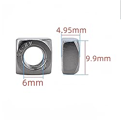 - Specification: M6 Suqare Nut Thread Diameter: 6mm/ 0.23''. Pitch: 1mm/ 0.04''. Width: 9.9mm/ 0.39''. Height: 4.95mm/ 0.19''. Feature: Due to its square shape, it has strong seismic performance. The thread is neat and clear, the stress is uniform, and it is not easy to slide. Easy to install, can be directly tightened with a wrench, stable and reliable locking performance. Reliable fixed performance, durable, able to withstand mechanical vibrations and high-intensity external forces. Made of 304 stainless steel, with rust and corrosion resistance, flat and smooth surface without burr, high workmanship, firmness and durability. Application: Machinery: Square nuts are one of the most commonly used fasteners in mechanical processing. By combining with bolts, they can be used to tighten, fix, and adjust parts. Architecture: There are various types of fastening tasks, and square nuts are widely used for anchoring building frames and load-bearing structures, such as connecting nodes in steel structures. Rail transit: A large number of bolts and nuts are required in the track laying of railway, subway, light rail and other transportation systems, among which square nuts are a commonly used fastener. Also widely used in industries such as power engineering, road transportation, and home building materials, and has a wide range of applications. Package Included: 50Pcs M6 Square Nuts. Every nut is engraved on the standard type of plating, well-made , strong and durable.