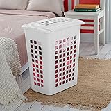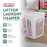 - Make laundry day easy with these Sterilite Rectangular LiftTop Laundry Hampers 8-Pack. These clothes hampers feature slim profiles that take up minimal floor space, yet hold plenty of dirty laundry. This package includes 8 laundry hampers. Collect dirty clothes in these plastic laundry hampers and then easily carry them to the washer. The sturdy rims provide added strength when lifting, and the 2 recessed handles make these laundry bins comfortable and easy to carry. Each laundry hamper comes with a removable, hinged lid. These lids keep dirty laundry neatly concealed and stay open for fast loading and emptying. These lidded laundry hampers compliment any home decor with their contemporary design. The ventilation holes allows diry laundry to air out before washing. These laundry baskets also have smooth plastic interiors that are snag-proof and easy to clean. Overall, each laundry hamper measures 19.13 inches long, 13.75 inches wide, and 22.88 inches tall.