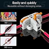 Safety and durability: Made from insulated material, which is flame-retardant, high pressure resistance, GKEEMARS fast connector can prevent electrical leakage. Tinned with pure copper, strong conductivity, anti-rust and anti-corrosion. Built-in stainless steel spring buckle, strong elasticity, not easy to fall off. High efficiency: Screw holes on both sides of the fast connector, which is convenient for fixing the wiring, simple but efficient. Quick wiring, no tools required and no damage to the core, can be fitted in seconds to stripped cables. Compatibility: GKEEMARS lever connectors suitable for single strand hard wire 0.2-4mm²/24-12AWG, and the multiple strand flexible copper wire 0.2-2.5mm²/24-14AWG. Practical lever connector kit: GKEEMARS cable connectors can be used for motor, electrical control, power supply, home appliance, lighting, machinery and other wire connection parts. Package content: 20 X T3 wire connectors