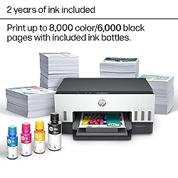 - COMPLETAMENTE CARGADA CON AHORROS – Ideal para impresión de bajo costo y alta cantidad—2 años de tinta HP incluida; obtenga hasta 8,000 páginas a color o 6,000 páginas en negro desde el primer momento