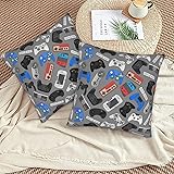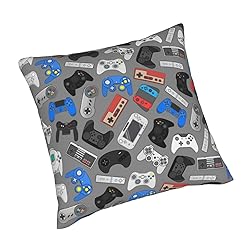Perinsto Video Game Controller Gray Background Throw Pillow Covers Set of 2 Decorative Pillowcases Soft Cushion Covers for Sofa Couch Bed Home Decor, 22"X22"