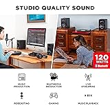 Compact 120W bi-amplified tabletop speakers feature an MDF cabinet with a bass reflex design, producing deep, rich sound through Black Kevlar drivers; Ideal for music production and studio recording 3.5" Woofer and 1" natural silk dome tweeter deliver the full spectrum of frequencies; Customize EQ via the rear panel controls, or use to configure Left/right Active Speaker Position Connect wirelessly via Bluetooth to listen to music on your smartphone, or stream music, and podcasts from your laptop or any other Bluetooth enabled device Rear panel features 1/4”, 1/8”, and RCA inputs for connecting to virtually any audio source; Front Panel Includes 1/8” AUX input to connect smartphones and other devices, and a headphone connection Comes with a 1/8” speaker interconnect cable, 1/8” to 1/8” cable and 1/8” to RCA cable Includes MPC Beats, the fully featured, beat-making software based on the legendary MPC workflow to help inspire you to create, record and share your ideas