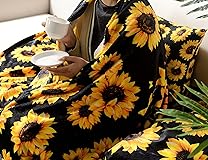 - WIBUE Sunflower Throw Blanket 60"x50" with 2 Pcs Pillow Covers 18"x18", Decorative Fleece Blanket 3 Piece Set, Fuzzy Soft Cozy Warm Lightweight Blanket for Bed Sofa Couch Chair