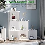 VERSATILE DISPLAY SHELF: This versatile display shelf can store all sort of items what you want: such as books, clothes, toys, decorations and more. A multi-functional storage shelf to display your daily essentials HIGH QUALITY MATERIAL: This cube shelf is made up of high quality PP panels, sturdy metal frame and ABS plastic connectors. Stable structure ensures that each cube can withstand a maximum weight of 11 lbs LARGER STORAGE SPACE: Each cube size is 11.8"L X 11.8"W X 11.8"H, the overall product size is 36.6”L x 12.4" W x 36.6" H. Please note: it fits storage bins that is smaller than 11" x 11". Large capacity to meet your different storage needs EASY TO ASSEMBLE: Simple modular structure makes it easy to assemble and disassemble. With the help of the instructional manual and wooden mallet, you can easily assemble the whole product CREATIVE & CUSTOMIZABLE: You can design different configuration according to your scene and usage. On the basis of the number of accessories we provide, you can assemble it in any way you want