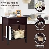 Giantex Nightstand, Wood End Table with Drawer and Open Shelf, Night Stand for Small Spaces, 2-Tier Bedside Table for Living Room Bedroom Dorm, Easy Assembly, Brown
