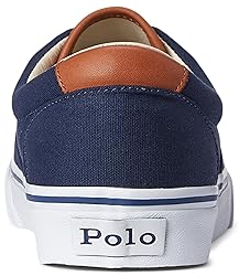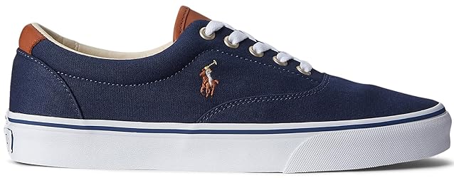 - A skate-inspired silhouette and vulcanized construction define this classic low-top sneaker. Made from cotton canvas, this version is accented with full-grain leather and Ralph Lauren's signature embroidered Pony. Rounded toe. Lace-up front. EVA footbed. Reinforced heel. Leather tongue and heel tab. Signature Pony embroidered at the outer side. "Polo" debossed at the heel. Lined with cotton twill. Collar lined with faux leather. Treaded rubber outsole. Upper and lining: cotton. Collar lining: polyurethane. Trim: leather. Imported.