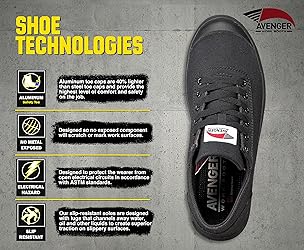 Designed to protect the wearer from open electrical circuits in accordance with ASTM standards KEY CERTIFICATIONS - Meets ASTM F2413-18I and C standards, achieves ASTM F2413-18 EH Rating, certified slip-resistant under ASTM F3445-21 standard PREMIUM TEXTILE UPPER - Durable premium breathable textile upper that looks great and built to last ADDED COMFORT - This Avenger Blade Work Boot has a Removable PUREcomfort Dual-density PU footbed with arch supports for extra flexibility and comfort when on your feet all day EXTRA COMFORT & DURABILITY - This Avenger Blade Work Boot has Cement Construction for extra durability, flexibility and comfort when on your feet all day