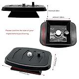 NOTE: NOT Universal, fits certain tripods only. Please take accurate measurements when ordering this type of mount replacement and check the compatible and size of the quick release plate to ensure it fits your tripod.Find your tripod brand and model on the tripod leg or head, check your compatible tripod models if in our list, if your tripod brand is not listed in our page, do not expect too much it to fit well. You must measure the size of the tripod opening head in both directions. 41mm QR Release Plate Compatibilty: Compatible with Ambico V-0550 V-0551 V-0552 V-0553 V-0554 (fluid type head only), Sunpak 7500 Pro 7500tm 7575, Kalimar Pro-Tech V-40, and so on.Base Size: 41mm (1 5/8") x 41mm (1 5/8"). The tapered square base fits into opening mount of the tripod head measures 1 5/8” (41mm) across in both directions. 43mm Tripod Quick Release Plate Compatibilty: Compatible with Sunpak 6400UT, WalMart MX1000/ MX 1000 Tripod/ X-638, CX-444, CX-888, CX-460, CX-460mini, CX-470, CX-570, CX-690, DF-50, VCT-D580RM, VCT-D680RM, VCT-R640, FHD52Q, D680, D580.Base Size: 43mm (1 11/16") x 43mm (1 11/16"). The tapered square base fits into opening mount of the tripod head measures 1 3/4” (43mm) across in both directions. Premium Material: The camera mount adapter plates is made of premium PVC material,and has an anti slip rubber pad. The middle anti-twist locking screw is made of aluminum material. The surface is finely oxidized, and strong. With standard 1/ 4 inch screw, and the screws on the quick release mount bottom could help you install faster. Easy to install and remove: According to the card position of the Pan/ Tilt/ Zoom, you could insert the mount quick release plates directly for installation. You could adjust the slotted screw with your fingers or tools. The quick release tripod mount adapter could be fixed to the camera base, facilitate the installation and disassembling of the tripod, save time and easy to use.High quality, sturdy and secure fit for your camera tripod mount.