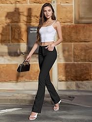 FLATTERING FIT: The bootcut pants are tailored to provide a slim and flattering silhouette. The bootcut leg design elongates the legs, while the slim fit accentuates your curves in all the right places. STYLISH DETAILS: The addition of a zipper adds a stylish and trendy element to these pants. It not only enhances the overall look but also allows for easy and adjustable closure, ensuring a secure and comfortable fit. VERSATILE WEAR: These pants are incredibly versatile and can be dressed up or down for various occasions. Whether you're heading to the office, going out for a casual day, or attending a special event, these pants can be effortlessly styled to suit any dress code. CONVENIENT POCKETS: The inclusion of functional pockets is a practical feature that adds convenience to your everyday life. You can easily store and access your essentials such as keys, phone, or lip balm without the need for a separate bag or purse. PREMIUM QUALITY: Crafted from high-quality materials, these pants are built to last. The stretch fabric ensures maximum comfort and flexibility, while the sturdy construction guarantees durability and resistance against wear and tear. This bootcut pants are a reliable and long-lasting addition to your wardrobe.