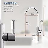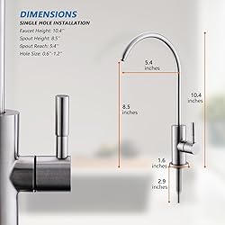 Perfect Match: Our sink drinking water faucet has a brushed nickel finish, no matter the size or shape, this reverse osmosis faucet can be matched with the appearance of various kitchen faucets. It is also suitable for stainless steel sinks or marble countertops. Healthy Life: We put your family's health first, the SUS304 stainless steel material for sink water filter faucet is qualified and food-grade, which promises every drop through the beverage faucet is clean, safe and pure. Modern Design: The water filter faucet for kitchen sink with 360-degree rotation gooseneck and 90-degree single handle water flow control, meets any angle you need. Solid construction and durable design provide trouble-free smooth operation. No Leakage: Our sink filter water faucet uses double leak-proof seal rings to avoid leakage. Each RO faucet will be tested before leaving the factory to ensure reliable use with no leaking or dripping, which let you never worry about it. Easy Installation: Stylish and modern design drinking water filter faucet comes with two washers and nut. You will find it’s simple to install underneath the countertop. We also provide 1/4" and 3/ 8"quick connectors, to fit your different installation needs.
