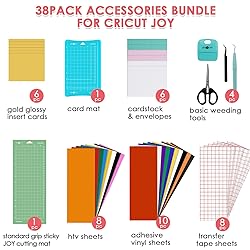 HTVRONT 38PCS Accessories Bundle Compatible with Cricut Joy, Accessories and Supplies Include Heat Transfer, Adhesive Vinyl Sheets, Insert Cards Set, Cutting Mat and Weeding Tools for Starter Kit
