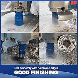 - When you are building/remodeling a bathroom or kitchen like installing shower or install the faucet and handles in bathroom, you will need to drill holes through Porcelain tiles without cracking, so you could use our diamond tip drill bit to make those holes very precise For a better finish and longer duration of the porcelain tile drill bit,you could start on a slight angle at its lowest speed for better control, then with light pressure carefully work through the tile The average life of the tile hole saw depends on several factors,including the type of aggregate and material, its thickness/hardness ,proper cooling and use This is the best diamond drill bit for rock, DIY ,ceramic workers, construction workers, general contractors and tradesmen. More Heavy Duty and Wear Resistant than electroplated diamond bit,provide very high efficiency,cuts faster,durable and sturdy Multi-material application ideal for cutting openings for faucets, pipes, and hoses through tile, glass, stone, granite, and brick Quality Creates Better Life. All our products are subjected to strict quality tests. We want all the products can be recognized for their quality and durability.