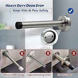 - 8 Inch Long door stopper heavy duty stainless steel door stop for wall/door mounted, brushed nickel, solid rigid modern doorstop for home office commercial places Features: – Made of stainless steel material, rustproof, anti-corrosion, great to use both indoor outdoor. - Thicken firm rubber, sound dampening, insert rubber are stable enough, can not be ripped off easily. - Stylish brushed nickel finish, applicable to home, office, hotel, apartment, or commercial places, etc.. - Easy to install with the installation instruction, screws and anchors. Specification: Size: 8 inch (200 mm) Material: SUS 304 stainless steel Finish: brushed nickel Package includes: 1*installation instruction. 2*screws& anchors, 1* expansion steel screws