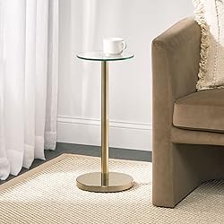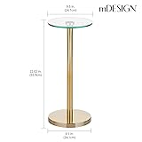 mDesign Glass Top Side/End Drink Table - Small Modern Round Accent Metal Nightstand Furniture for Living Room, Dorm, Home Office, and Bedroom - 9" Round - Clear/Soft Brass