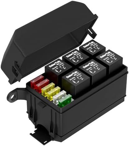 DaierTek 12V Relay Box 6 Slots Fuse Relay Block 6 Slots ATC/ATO Fuse and Relay Block with Relay Universal Fuse and Relay Box Kit for Truck Marine Boat