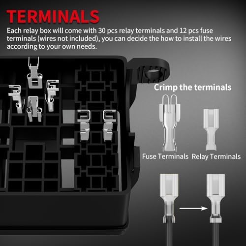 - Suitable Terminals - This 12v relay box will also come with terminals for relays and fuses, which will enables you to install and use the fuse and relay box at once.