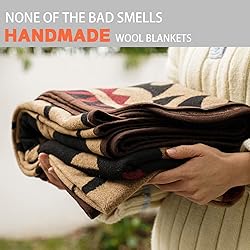 PuTian Merino Wool Blanket - Warm, Thick, Washable, 87" x 63" Large Throw for Outdoors, Camping,Couch, Bed, Travel - Super Soft Wool Blanket (Striped Fire Light Tan)