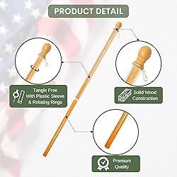 Premium Quality: Weather Resistant - Display your flag proudly with our flagpoles made of solid wood and beautiful lacquered finishing guarantee to last many years. Tangle free : Our flagpole are designed with plastic sleeve to prevent your flags from tangling. You won't have to untangle your flag even during windy days! Easy Assembly - Simply slide the flag pole through the flag opening and hook the ring to the flag's grommet to secure it. Flag and bracket sold separately. Details - Length: 56". Diameter: 15/16". Qty: 2 pcs.