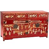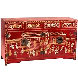 Red Lantern Artisan Crafted Red Lacquer Buffet - Hand Painted Courtyard