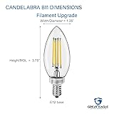 - Great Eagle's LED B11 Candelabra bulbs are for decorative fixtures that have visible bulbs. The clear glass with filament can be used for a vintage look or modern depending on the color chosen.