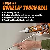 Indoor/Outdoor 100% Waterproof Seal – Provides a durable, long-lasting seal for both indoor and outdoor use, perfect for showers, sinks, windows, doors, gutters, and vents 30-Minute Water-Ready – Fast-curing formula allows water exposure in just 30 minutes, perfect for quick home repairs and DIY projects Mold & Mildew Resistant – Protects surfaces from mold and mildew growth; easy to maintain with regular cleaning for lasting performance Highly Flexible & Durable – Meets ASTM C-920, Class 35 standards; won’t shrink, crack, or break down over time Lifetime Guarantee & Clean Finish – Maintains a professional look without yellowing; backed by Gorilla’s Lifetime Guarantee for peace of mind