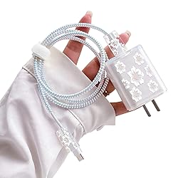 [Compatible] - The cable chompers are suitable for iPhone all Originalcables,Perfect compatible for iPhone 5 5S SE 6 6S 7 8 11 12 13Pro Max XS XR X iPad charger cable.★Note★:IPHONE USB CABLE , HEADSET LINE AND CHARGER ARE NOT INCLUDED IN THE PACKAGE. [Cable Protector] - These cable buddies effectively protect your phone cables from bending, tangles, breaking, and fraying, extends the useful life.They can also protect your charger head and cables from the dangers of chewing on electrical cords. Decorate your iPhone accessories. [Adorable Styles & What You Get] - Come with 2 White Camellia End Protectors + 1 silicone Spiral Protection Ropes + 1pc cute flower for iPhone 18W/20W Plug cover +1pc Power cord storage belt + Friendly Customer Service.Lovely pretty white camellia pattern design,easy to attract eye. [Ideal Gift] - The DIY Protectors Cable Protector suit adopt flowers design, which is a great mobile phone accessory, various cute cartoon fun pretty pattern. you can be used as a gift for kids, family, friend who are troubled by data line interface damage etc. [Warranty] If you encounter problems during use, you can get 24-hour customer service response and solutions. For any quality problems that occur within 90 days, a replacement or refund will be made. Please feel free to contact our after-sales service.