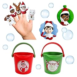 INCLUDES: 5 Finger Puppets, 2 Stacking Rinse Cups, 2 Bath Squirters and 1 resuable storage bag EDUCATIONAL: Excellent educational tool to help teach your child colors, counting, and more HOLIDAY GIFT IDEA: All items are perfect for stocking stuffers IMAGINATIVE: Encourages imagination, interaction, and engagement FAVORITE CHARACTERS: Elf on the Shelf favorite characters including Boy Scout Elf, Girl Scout Elf, Reindeer, St. Bernard Dog and Fox