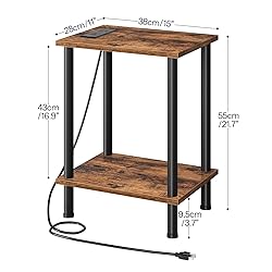 - The end table with 1 standard outlet, 1 USB port and 1 Type-C port ensures you'll never run out of outlets. Charge your phone, headphones, tablet, and desk lamp all at once for ultimate convenience. Beautiful appearance is to more closely match your home decor, rich function is to make your life more convenient. Specifications: - Color: Rustic Brown - Material: Particleboard, Metal - Product Size: 15”L x 11”W x 21.7”H (38 x 28 x 55 cm) Package Contents: - 1 x Side Tables - 1 x Accessory Kit - 1 x Allen Key - 1 x Instructions HOOBRO Notes: Please Attention about children is not allowed to stand or climb the end side table to avoid potential injury caused by toppling.