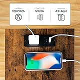 End Table with Charging Station: With 4.9 feet long power cord, one 3-prong AC outlet, 1 USB port and 1 Type-C port, this small side table offers you enough charging space for your electronic devices. Moreover, the simultaneous charging of your phone, tablet, desk lamp or laptop shall be a reality, no need for extra power strips Dimensions: 15"L x 11"W x 21.7"H. The sturdy panels are tightly attached to the firm metal legs so each nightstand with power strip will stand by your side year after year. This small end table features two open shelves, offering plenty of storage space for your necessities Multipurpose End Table: The 2-Layer side table is a multipurpose piece that can transform into a bedside table, night stand, phone table, snack table, couch table, etc. It's suitable for living rooms, bedrooms, study rooms, and more, adding functionality and organization to any small space Sturdiness Speaks: Premium particleboard and metal frame endow this small bedside table with durability and steadiness while the adjustable feet ensure the balance even on uneven floors Assembly is a Breeze: Thanks to the explanatory & easy-to-understand instructions and simple structure of the narrow side table, all you need is to follow the specific steps and swing the Allen key supplied. Everything is done in minutes.