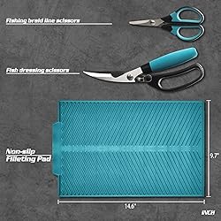 KNINE OUTDOORS Fish Fillet Knife Set Curved Flex 7 inch 9 inch Filet Knife for Filleting and Boning, Non-Slip Handles, Includes Fishing Braid Line Scissors, Fish Dressing Scissors, Filleting Pad