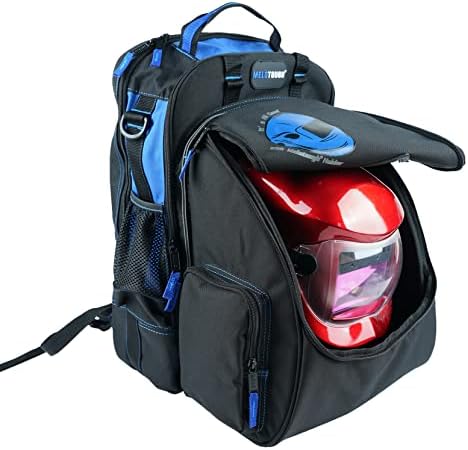 MELOTOUGH Electrician Tool Bag Welding Tool Backpack with Helmet Catch Heavy Duty Tool Organizer Bag for Electrician, Carpenter,Tradesman,Construction,HVAC,Welder (Blue)