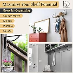 Heavy Duty Brackets – Constructed from heavy-duty steel, these closet rod brackets heavy duty can support up to 300 lbs per pair, ideal for hanging construction tools, gardening tools, sports equipment, ropes, hoses, bird feeders, hanging plants and other heavy items. Also works as a closet bar support bracket in utility rooms or garages. Antique Design – Enhance your workspace or basement with our stylish, heavy duty shelving brackets, featuring a S design hooks for versatile hanging use. These hook brackets also function as closet rod support bracket, providing smart storage solutions for your home, garage, workshop, warehouse, and more. Solid Metal Construction – Crafted from A36 hot-rolled steel, our metal shelf mounting brackets are strong and reliable. Each black powder-coated bracket is perfect for accommodating 6"-14" shelves. They are ideal for organizing shelves in the kitchen, living room, garage, workspace and businesses. Safety & Stability – Designed for handling heavy-weight items, our brackets offer a unique design that ensures stability and safety. Perfect for hanging power tools, shovels, drills, keys, and more to create an organized space in your closet, kitchen or workspace. USA Designed – Engineered by Balin Designs, your one-stop-shop based in the Sunshine State of Florida. We are a family-owned outfit on a mission to fill every USA home with durable and esthetic shelving solutions that every American derserves.