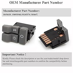 Function: When your car lights stop working or become dimmer and the fuse was still good without bare wires or loose connections, this switch can well fix this problem as it controls all car lights. OEM Part Number: D1561D; 19245374; 15693548; DS647; Kindly please check the description or use the year make model drop down bar and interchangeable part numbers to confirm the compatibility before purchasing Easy to Install: It has an easy plug in installation without modification; first: remove the front dash panel (four screws); second: unplug the old one which was obviously damaged; thirdly: plug in the new one Solid contacts, well molded abs plastic; superior pure copper, no aluminum at all; it perfect fits just like dealer parts and without dealer price Package includes: 1 piece of D1561D Headlamp Switch