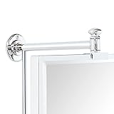 A Perfect Choice for a Cornered Vanity: TEHOME' best selling farmhouse pivoting mirror is now avaliable at a Pivotable-N-Viewed design, no matter what kind of dilemma you are having with any of your rooms, this mirror can just easily solve your problems. Dimension & Colors: Overall (Includes Pivot Grommets): 26" high x 16" wide, Excludes Tilot Gromments: 22 inch by 14 inch. Two finishes avaliable, matte black & chrome, finished with an electro-plated technique for better quality and much more valued looking. Pivot-N-View: This swivel mirror is adjustable at any view (360 degrees), making this mirror extremely functional , a pefect fit at a cornered vanity or a vanity which has a window above. Almost No Installation Required: 95% of this mirror comes assembled (pivoting hardware has already been secured on the mirror), customers simly need to attached the mirror to the wall with our included anchors & screws. Stay Positioned: The mirror will stay positined at any angle you desire when pivoting.Pivot hardwares has been tested at US certified labs which is super sturdy & strong.