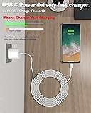 [Long iPhone Charger & 10FT Cable] The iPhone Charger block supports quick charging, meaning you can charge your iPhone 14 13 12 11 to 50% in just 30mins--3x faster than the 5W original apple charger, and the 10ft apple USB C Lightning cable--3X longer than the original one, gives all your outlets easy accessibility. Safety Efficient Fast Charging:The PD Wall Charger for iPhone owns bulit-in multi-protection system, avoiding from over-voltage, over-charge, over-heat, Etc. The smart chip including in the certified fast charging cable match the current required by the Apple device automatically, charge your iPhone/iPad device fast, safely and steadily. 10FT Long Lightning Cable:Extra Long iPhone charger cord 10 foot Apple Certified equipped with smart chip and high quality copper wire, promises no warning message pops up. It is durable, can withstand 15,000 bending. Apple phone charger could connect your MacBook/Pro with iPhone/iPad directly and enjoy the 480 Mbps data transfer speed. Fast Chargers for iPhone :USB C Fast Charging for iPhone 14 /14 Pro/14 Pro Max / 14 Plus / iPhone 13 / 13 Pro / 13 Pro Max / 13 Mini / 12 / 12 Pro / 12 Pro Max / 12 Mini / 11 / 11 Pro / 11 Pro Max / XS Max / XS / XR / X / 8 Plus / 8, iPad, AirPods. Also provide standard charging speed for iPhone 7 / 6S / 6 / SE / 5S / 5 / 5C. What you get: 2 packs of Type C iPhone charger plugs, 2 packs of 10-foot Type C to Lightning cables, 24-hour friendly customer service.