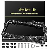 QUANQIUFEI 2 Pack Bling License Plate Frames for Women, Sparkly Rhinestone Diamond Car Accessories with Glitter Crystal Caps (Black)