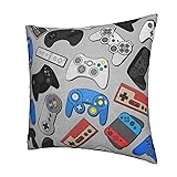 Oplp Video Game Controller Grey Background Colorful Gamepad Throw Pillow Covers Set of 2 Pillow Case Square Case Cushion Home for Bedroom Sofa Chair Decor 18"x18"
