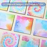 Large Amount for Long Time Use: the package contains a total of 12 pack of sticky notes cute, 30 sheets for each pack, available in assorted colors and small sizes, colorful and beautiful, sufficient to meet your daily use, replacing and sharing needs Pocket-Sized, Easy to Carry: This tie-dye notebook features a cute and fun tie-dye design, is exquisitely compact, and will be loved by teachers. Each notebook measures approximately 7.6 x 7.6 cm / 3 x 3 inches, making it easy to write in and easily fits into a pocket, handbag, or backpack when out and about Reliable and Smooth to Write: made of quality paper with adhesive, our tie dye sticky pads are safe and serviceable, easy to peel off from the side and stick, not easy to fall off or remove, hard to fade, so that you can use them with confidence Practical and Convenient to Use: these colorful memo notes are self adhesive, you can easily paste them on walls, doors, windows, refrigerators and other flat and smooth surfaces and tear them off without worrying about leaving vestiges, nice reminders for you Versatile: These brightly colored sticky notes are eye-catching and functional, suitable for everyday use in homes, offices, birthday parties, and more. They can also be used as party favors, gift stuffing, and more