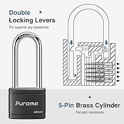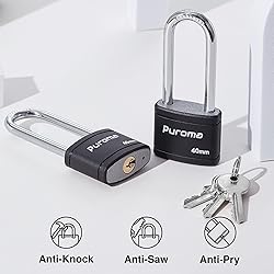 - Puroma 2 Pack Keyed Padlock with 3 Keys, Portable Heavy-Duty Locks for Gate Fence Hasp Cabinet Toolbox Locker School Gym Locker (Black) Features: Two Padlocks, Three Keys: The same key opens all locks. Covered body: Scratch and Corrosion Resistance. Hardened Steel Shackle: Cut Resistance. Copper Lock Cylinder: Not easy to rust, long service life. Double Locking Levers: Pry Resistance. 5-Pin Brass Cylinder: Pick Resistance. 1.8mm Thick Copper Key: Not easy to bend or break. Package Contents: 2* Keyed Padlocks 3* Keys