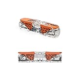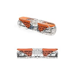 [Save your wrists!] WAGO LEVER-NUTS are lever-actuated, which means that there is no twisting; no taping! [Re-usable.] Because of their innovative design, WAGO LEVER-NUTS may be opened and closed repeatedly with no loss of connection integrity. [UL486C Listed for solid or stranded wire.] These hardy connectors meet or exceed rigorous standards for pull-out, temperature-cycling, vibration and corrosion resistance. [Use them everywhere!] Although they were engineered to meet the demanding specifications of use in factory, lighting, HVAC, appliance, recreational vehicles and more, LEVER-NUTS are priced for convenient everyday use in DiY projects - like yours! [Billions of connections in service!] As the originator of spring pressure technology, WAGO has been the market leader in reliable connections since 1951! Terminates 20-12 AWG solid, 18-12 AWG stranded