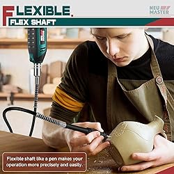 📢2 Year After-Sale Service--We provide new replacement instead of repairing services. If you have any questions, please contact us whenever you like. 👍【EASY TO USE】NEU MASTER electric rotary tool come with 1/8", 3/25" collets, It accepts accessories from 3/25'' to 1/8'' shank,widely compatible than others. More stable when fixing accessories for grinding, cutting, wood carving, sanding, engraving, etc. 👍【160PCS ACCESSORIES & FLEX SHAFT】160pcs complete accessories to meet your different needs. The flex shaft is perfect addition for your rotary tool, allowing you to maximize the reach and control. The cover sheild provide a better protection and equipped with a case for easy storage and use. 👍【180W & 6 VARIABLE SPEEDS 】The corded rotary tool equipped 180W high performance motor, 6 Variable speed range from 10,000 to 35,000 RPM allows for adjusting rotation speed flexibly according to different working duties and the type of materials being used. Easily meet your need for DIY. 👍【ERGONOMIC DESIGN】Rotary tool's body is soft rubber ergonomic which ensures comfort for long working hours. The ventilation holes on housing effectively dissipate the heat of running motor, keep consistent performance, extend tool's life. 🎁【PERFECT CHRISTMAS PRESENT FOR CRAFT LOVERS】Buy NEU MASTER Rotary Tool for your parents, friends and lover who like DIY and crafting projects, it is a christmas surprise for people who like handmade jobs. It suitable for polishing, sanding, engraving, grinding, carving and drilling work. Easily meet your need for Halloween DIY projects at home or events.