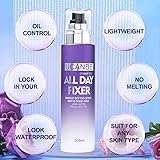 2PC SETTING SPRAY for Oily Skin: UCANBE ALL DAY FIXER is a finishing spray for keeping your makeup stays put with matte finish. It contains pearl powder which would help control oil and brightening your face. Airbrush design is easily to prevent from cracking or smudging your make up. LOCK IN YOUR LOOK: This lightweight setting spray knock down shiny, prevents oil from showing up, long lasting will always keep your foundation, eyeshadow, blush and concealer in place, and keeps color fresh. Remains no melting, no fading throughout the day. FACE MIST: Formulated with skin nourishing ingredients like aloe, trehalose and undaria pinnatifida to smooth and hydrate your skin, works before and/or after your make up, letting your skin breathable and without feeling tight or dry. TIPS & TRICKS: Awaken the formula, shake it well before use. On face: Hold at least 10 inches from your face and spray in an “X”and “T”motion about 3-5 times. Avoid spraying directly into eyes. On application: you could spray on brush or sponge for a vibrant and nature look. FEATURE: This large size of finishing spray would keep company with you through a whole summer time, it helps extend makeup wear, deflect surface shine, smoother-looking, refresh your look. No animal tested, alcohol free, oil free, suitable for all kinds of skin type.