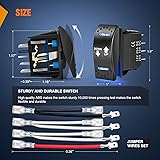 - Nilight Momentary DPDT Rocker Switch Backlit: BlueInput voltage: 12V/24V DCAmp rating for each switch: 12V DC/20AMP; 24V DC/10AMPSwitch Terminal: 7 PINInstallation:Pre-wired Nilight rocker switch Mainly used together with wiring harness to control Winch, Pump, Horn, Reclining Media Room Seats, Auto Bilge Pump, or led work lights, headlights, taillights, etc.The product fits most cars, SUVs, ATVs, UTVs, 4X4, motorcycles, trucks, Wranglers, boats, yachts, and other off-road vehicles.Note: Amp rating for the switch: 12V DC/20AMP; 24V DC/10AMP. Please wire a relay if you are going to hook an accessory that is over 20AMP at a 12VDC power source. Or the switch will be burnt out due to its high current.