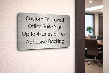 Custom Engraved 4x6 Brushed Silver Office Door Wall Suite Sign | Plaque Plate Small Business Home Office Signage Wayfinding Directional