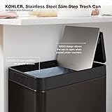 Kohler 23825-STW 13-Gallon Slim Step Trash Can, Black Stainless Steel, Space-Saving Design with Bifold Lid, Durable and Easy to Clean, K-23826-BST
