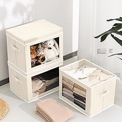 Front Window Design: Designed with cleart window, the fabric storage bins with lids allow you see and find inside storage items quickly, rather than pull the storage baskets out from your closet. These closet organizer bins save you much time while keep your rooms tidy. Sturdy Sturcture: There are stiff cardboard inserted in the bottom, lid and all side walls to offer extra support, the collapsible storage cubes keep upright and sturdy all the time to store items better. And the closet baskets are sturdy enough for prolong use. Firm handles & Material: All the storage boxes are featured with two sturdy handles, easy for grab and carry. And the stitches of handles are strengthened and delicate, bearing much weight. The closet bins for organization are made of non-woven fabric. Stackable & Foldable: With rigid lids, the closet organizers and storage bins can be stacked up within your limited space. Remove the lid and bottom plate, you can fold the closet storage bins into flat state, easy for storage in your drawer when not use, saving space Multiple Purposes & Occasions: With large size(14.9 x 9.8 x 9.8"), Homsorout baskets for organizing are ideal ways to store clothes, towels, yarns, toiletries, hats, shoes, office supplies, etc. And with neutral color, you can place the fabric bins in your living room, bedroom and other places, being decorative storage bins.