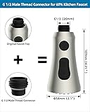 Almost Universal: Comes with 15 adapters compatible with American Standard faucets, AquaSourse, Kohler, Hansgrohe, Grohe, Moen, Delta, and almost all types of faucets 15 Faucet Adapters Kit: Package with a total of 15 adapters, compatible with the most major brand faucet, easily choose one to fit your faucet according to our manual 3 Function Kitchen Sink Sprayer: Stream/spray/flushing mode for more convenient use; Flushing mode can easily flush food debris with powerful water; Easily switch among 3 modes through 2 buttons Great Quality: Made of engineering-grade ABS plastic with a Brushed Nickel finish, ensuring longevity; Silicone nozzles, easy to clean, good anti-rust; No leaking to save much water and energy Easy to Install: Without any tool, take minutes, simply unscrew your old faucet head and replace it with the new one is done well; It is also a multi-mesh aerator, has no splash, and can filter out most impurities