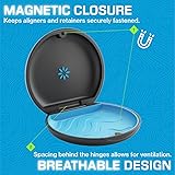 - This slim, modern retainer holder case keeps your Invisalign aligners and retainers secure when at home and while on the road. A magnetic closure ensures the retainer case stays securely fastened, while a textured liner helps to minimize movement. Specialized spacing behind the hinge of this Invisalign case provides ventilation, allowing your aligner to breathe. This slim retainer case measures 3 3/4 inches in diameter and 3/4-inch high and arrives in a black drawstring pouch that can be used as an additional storage component if desired.