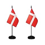 - Small Mini Denmark Danish Dane Deluxe Table Flag Set Desktop Flags With Solid Pole by tibijoy Speciflcation: plastic flag base:13 inches tall; flag size:8.2" x 5.5"(W xL).Quantity: 2 pack Denmark Danish Dane Miniature Deluxe Table flags. Material: Made of 100% durable polyester and black solid plastic sticks with a spear top. comes with a black plastic base to keep the Denmark Danish Dane flag standing steadily on your desk. Fade Resistance: the color is very bright and vivid, and the dye processed for UV fade resistance. Decorative Desk Flags: perfect patriotic decoration. this Denmark Danish Dane miniature Desktop flag will be the best choice as a table decoration for your home, offices, etc. Note: our flag,flagpole and base are separate.you need to assemble yourself.