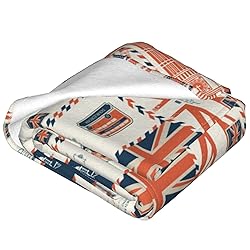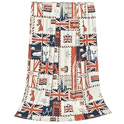 Oplp UK and London Theme Throw Blanket for Bed Sofa Couch Envelopes Symbols Flag Retro Style Fleece Blankets Lightweight Soft Cozy 60"x50"